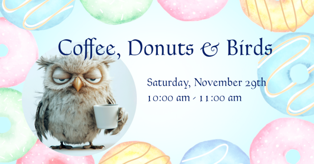 Join us on Small Business Saturday for an informal chat about the birds you are seeing and how to help them this winter, while sampling our delicious shade grown coffee and local pastries.
